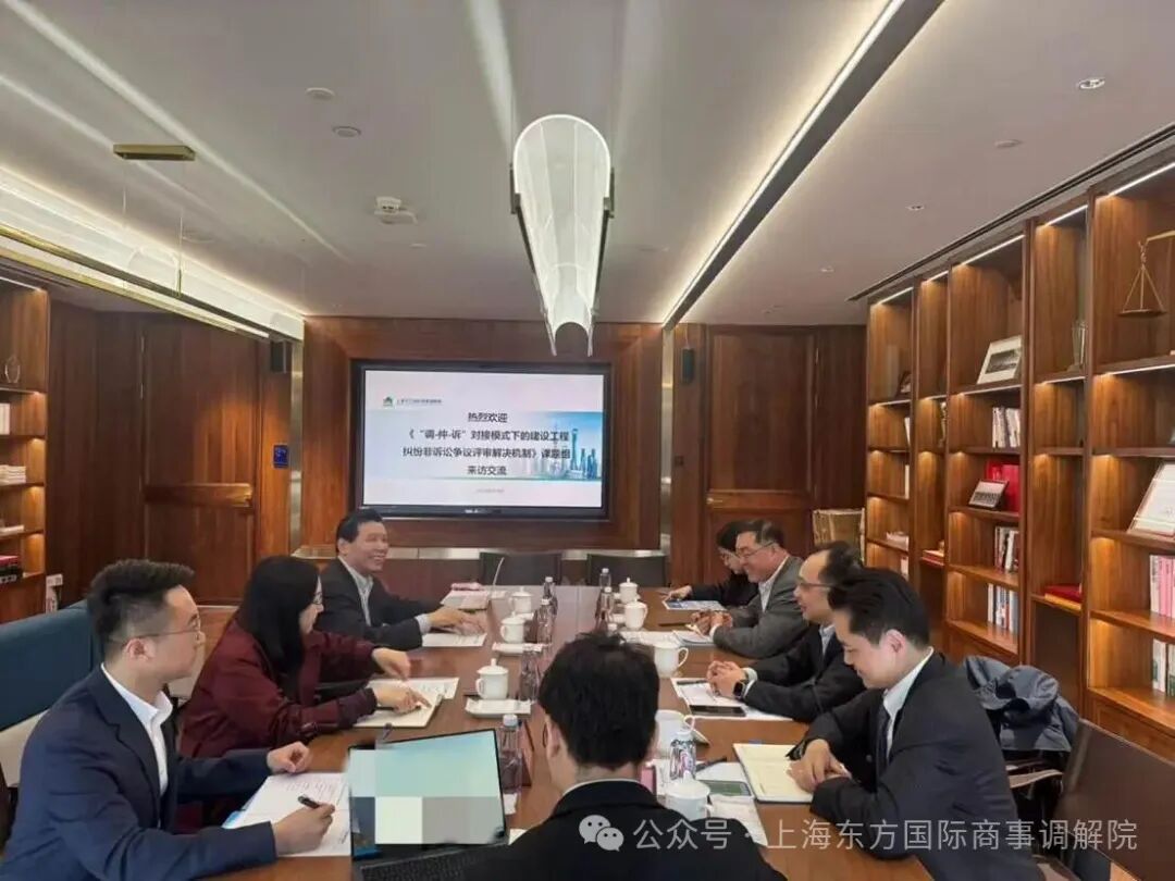 2025年12月,南通仲裁委员会(临港产业仲裁院)与南通市中级人民法院联合申报的《“调-仲-诉”对接模式下的建设工程纠纷非诉讼争议评审解决机制相关问题研究》入选江苏省高级人民法院2025年度重点调研课题。 为深化矛盾纠纷多元化解机制改革,探索建设工程领域专业化、市场化的非诉讼争议解决路径,2026年4月16日上午,南通仲裁委员会(临港产业仲裁院)、南通市中级人民法院“调-仲-诉”对接模式下的建设工程纠纷非诉讼争议评审解决机制课题组走访上海东方国际商事调解院,召开专题研讨活动。 南通仲裁委员会副主任王峥,南通市中级人民法院党组成员、审判委员会专职委员吴勇军,上海东方国际商事调解院理事长盛勇强、理事兼主任汪怡群、南通市中级人民法院民六庭(建工审判庭)法官助理钱荣,南通仲裁委员会仲裁员徐寅哲,课题组秘书熊应然、上海东方国际商事调解院规划发展部助理张芷睿、秘书处调解秘书杨万玉等一同参与研讨。 与会人员围绕建设工程领域纠纷化解的现实需求与制度创新展开深入交流。上海东方国际商事调解院介绍了在“调-仲-诉”对接方面的实践成果,特别是与仲裁机构合作建立的调仲对接机制,通过在调解阶段同步完成程序性与实体性审查,大幅缩短仲裁确认时间,提升了当事人对多元解纷机制的信任度和使用意愿。 各方一致认为,建设工程纠纷具有技术性强、事实复杂、鉴定依赖度高等特点,传统诉讼与仲裁程序周期长、成本高,亟须引入专业化、前置化的非诉讼争议评审机制。下一步,课题组将充分吸收上海先进经验,立足建设工程领域实际,加快完善“调-仲-诉”三位一体多元化解体系,推动非诉讼争议评审机制标准化、规范化、专业化落地,切实降低纠纷解决成本、提升争议化解效率,为建筑业高质量发展、法治化营商环境持续优化提供更加坚实的法治保障。